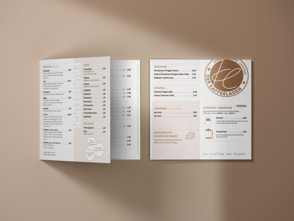 Mit der Inhaberin Diana Laden verbindet mich eine langjährige, partnerschaftliche und vertrauensvolle Zusammenarbeit, die bis heute besteht. Der KaffeeLaden wird kontinuierlich gestalterisch weiterentwickelt und flexibel an neue Anforderungen angepasst – als lebendige Marke, die sich stetig weiterentwickelt, ohne ihre Identität zu verlieren.